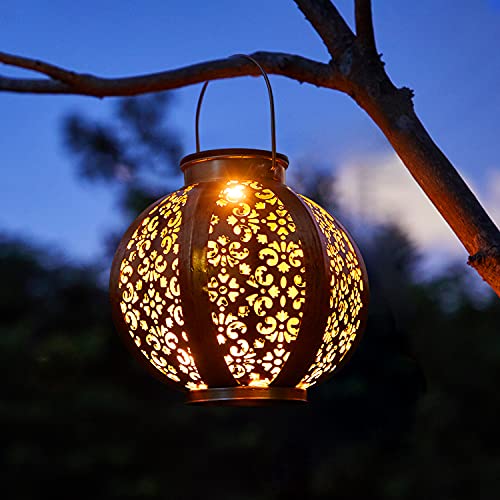 OxyLED Lanterne Solari da Esterno 2 Pezzi Metallo Lanterne da Esterno da Giardino Appendibile IP44 Impermeabile LED Decorative Lanterna per Giardino Terrazza Balcone Bianca Calda