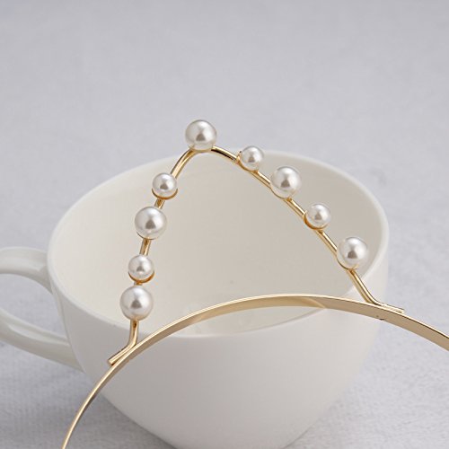 Oyfel - Cerchietto per capelli a forma di gatto con orecchie con perle Hairband, per bambini, donne, feste, accessori di compleanno, 1 pezzo