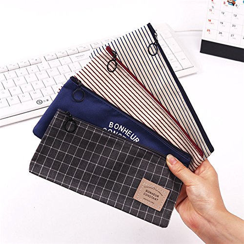 Oyfel Trousse Trucco scolastico Pochette moneta Plumier Plaid Righe Tela Semplice per matite penna Sacchetti a cosmetici trucco cancelleria Vintage Scuole viaggio stoccaggio 4 PCS