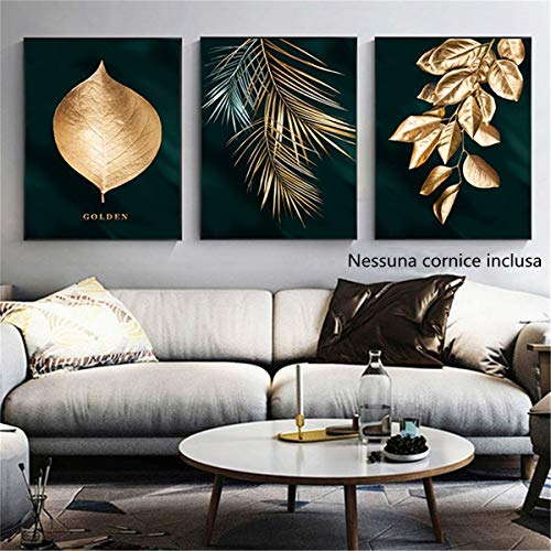 OYFFL 3 pezzi Golden Black Leaf Canvas Art Pianta tropicale Stampe botaniche Art Decorazione da parete per la cucina di casa Decorazione della parete del bagno (50*70cm Senza cornice)