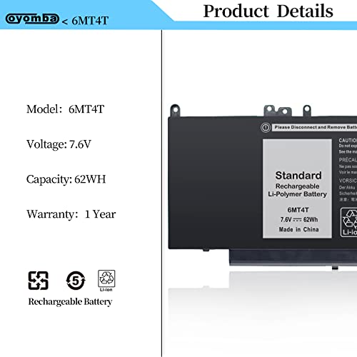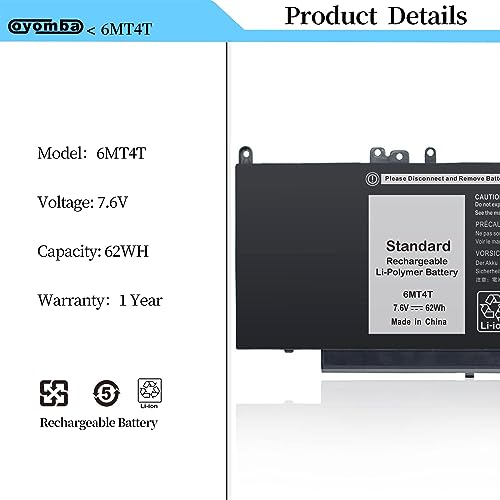 OYOMBA 6MT4T Batteria per Laptop Compatibile con Dell Latitude 14 5470 E5470 15 5570 E5570 Precision 15 3510 M3510 Series Sostituzione per Notebook per 7V69Y TXF9M 79VRK 07V69Y 0HK6DV 079VRK 0TXF9M