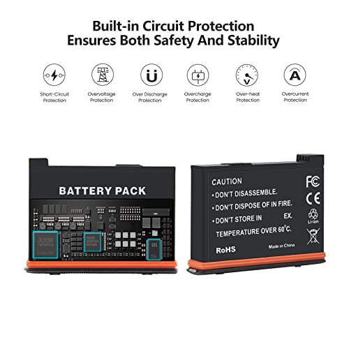 【Grande capacità, resistenza ultra lunga】Due batterie ricaricabili agli ioni di litio ad alta capacità da 1800mAh raddoppiano il tempo di funzionamento della fotocamera, prolungando il tempo di ripresa e fornendo divertimento infinito.