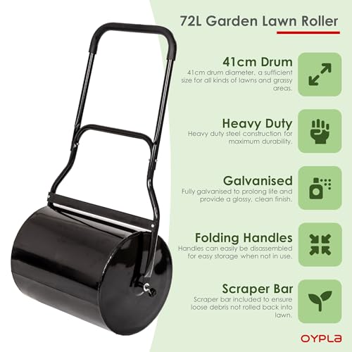 Oypla - rullo per prato, resistente, con serbatoio per acqua, 72 l