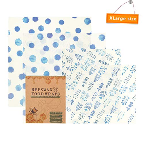 Oyunkey, involucro in cera d'api in cotone biologico e cera d'api, riutilizzabile, biodegradabile, in plastica, alternativa alla conservazione della cera d'api, confezione da 4 Blue