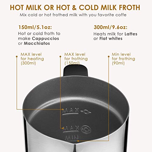 OZAVO Montalatte Elettrico Montalatte Automaticoin Acciaio Inossidabile Controllo Temperatura Schiuma per Latte e Caffè Calda e Fredda