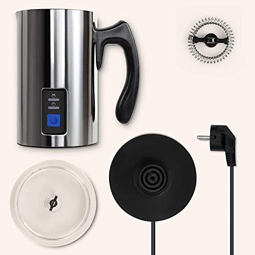 【 Design perfetto 】 ad alta potenza di 550 W, con tecnologia silenziosa, non ci sono suoni o vibrazioni durante il funzionamento. Ha un paio di gommapiuma extra gratuita per una schiuma spessa e abbondante. Il LED si illumina per mostrare lo stato del riscaldamento, del raffreddamento o del latte caldo. Questo dispositivo conserva meglio la temperatura quando la temperatura raggiunge il valore dell'impostazione di 65 ± 10 °C, si spegne automaticamente.