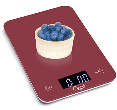 Ozeri - Bilancia da cucina digitale e professionale, funzione touch, in vetro temperato Red Engine