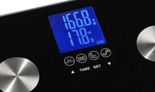 Utilizza algoritmi avanzati per calcolare in pochi secondi l'indice di Grasso Corporeo, il Livello di Idratazione, la Massa Muscolare e indice osseo.