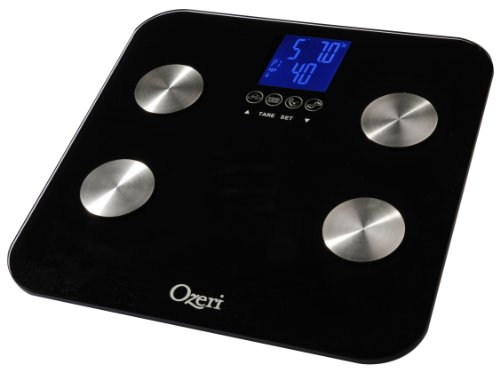 Ozeri Touch - Bilancia Digitale da Bagno (portata 200kg / 440 lbs)) - Misura Peso, Grasso Corporeo, Idratazione, Massa Muscolare e Ossea con tecnologia di Riconoscimento Automatico di 8 Profili Personali impostabili