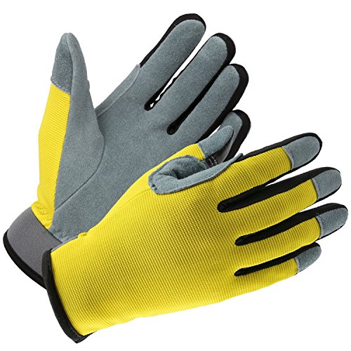 Ozero - Guanti da giardinaggio da donna, in pelle di daino, ideali per giardinaggio, lavori domestici, riparazione di automobili, maneggiamenti, assorbire il sudore e touchscreen, giallo