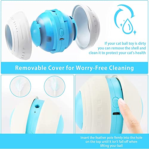 Oziral Palla giocattolo elettrico per gatti, palla interattiva con rumore degli uccelli, rotola automatica a 360°, custodia protettiva in gomma rimovibile, ricarica USB, luce LED