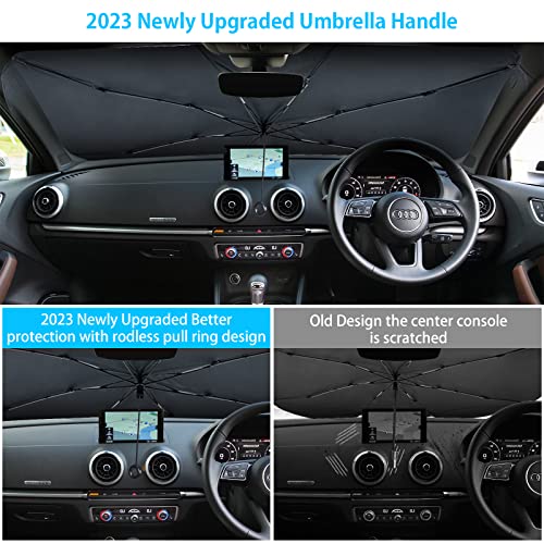 2023 Aggiornamento antigraffio progettato: Oziral parasole per parabrezza auto ha un albero aggiornato per una protezione più efficace della vostra auto, un albero corto, un cavo di trazione morbido e un anello di trazione specificamente progettato per evitare graffi sulla console centrale della vostra auto.