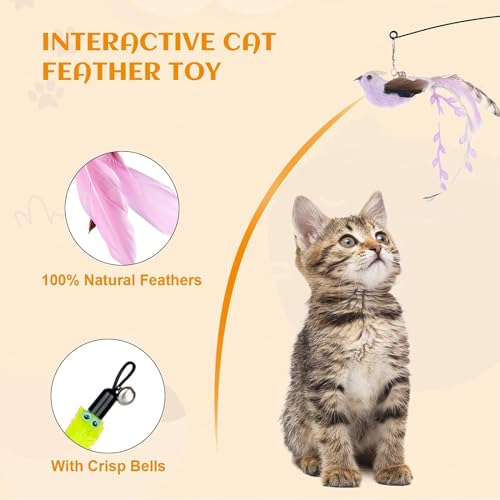 【Interazione e allenamento】: piume colorate luminose e campane croccanti attirano l'attenzione dei gatti e attivano il loro istinto di girare, saltare, inseguire ed escursioni. Mantenete il vostro gatto agile e sano e rafforzate la fiducia e l'amicizia tra il vostro animale domestico e il suo proprietario.