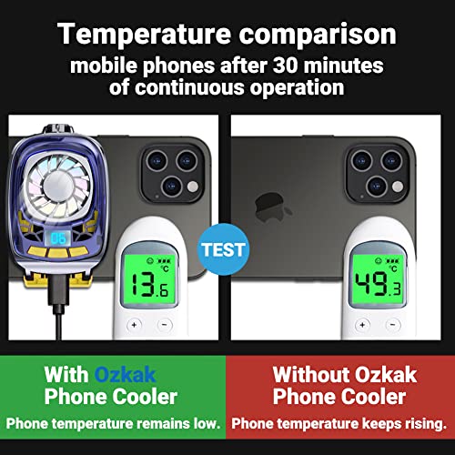 Ozkak Ventola di Raffreddamento del Telefono, Display di temperatura, Radiatore Portatile per telefoni cellulari per il gioco e lo streaming dal vivo, Compatibile per iPhone/Android