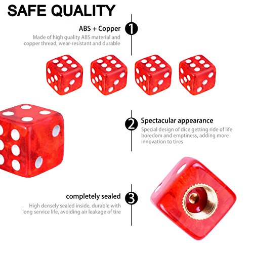 Ozuar 4 pezzi tappo valvola pneumatico ruota valvola del pneumatico valvola tappo valvola tappi protezione antipolvere resistente all' usura universale per auto camion moto Electro mobile Pickups bianco Red Dice small