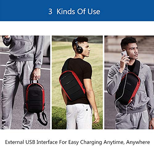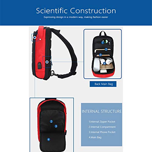 OZUKO Zaino Monospalla Uomo e Donna,Borsello Tracolla,Zainetto Piccolo Impermeabile per Camminare, Viaggiando, Ciclismo (Aggiornare, Nero rosso)