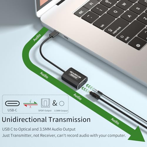 【SOLO per il segnale audio STEREO】Si prega di notare che questo convertitore da USB-C a Toslink è adatto SOLO per trasmettere il segnale audio stereo e NON supporta il suono surround 5.1/7.1.
