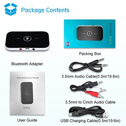 ☛【Contenuto della Confezione】Trasmettitore e Ricevitore Audio Wireless 2-in-1, cavo micro-USB, cavo audio da 3,5 mm, cavo audio da 3,5 mm a RCA, manuale dell'utente, richiesta di prodotto entro 24 ore e 12 mesi di garanzia.