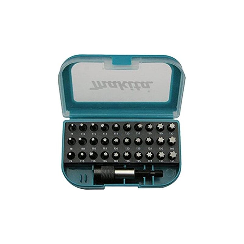 Accessori originali de Makita, Scatola de plastica con pezzi de 25 mm lunga, Azionamento 6,3 mm 6-Kant (un quarto de pollici), Torx Bit Set (31 pcs .)