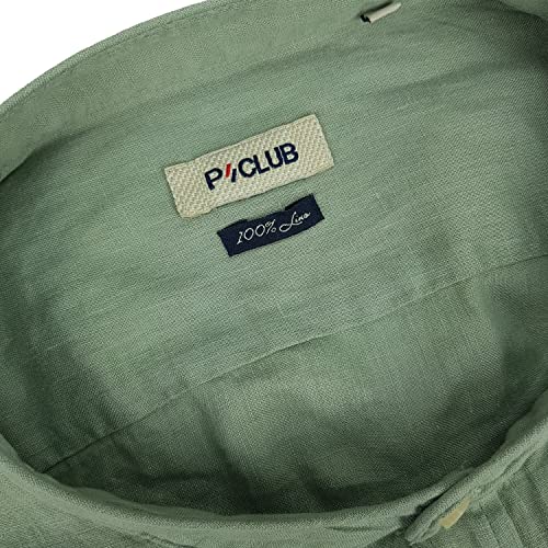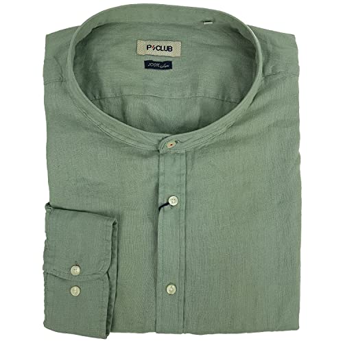 P-Club Camicia Uomo Manica Lunga 100% Puro Lino Collo alla Coreana Tinta Unita M L XL XXL 3XL (XXL - Verde Salvia)