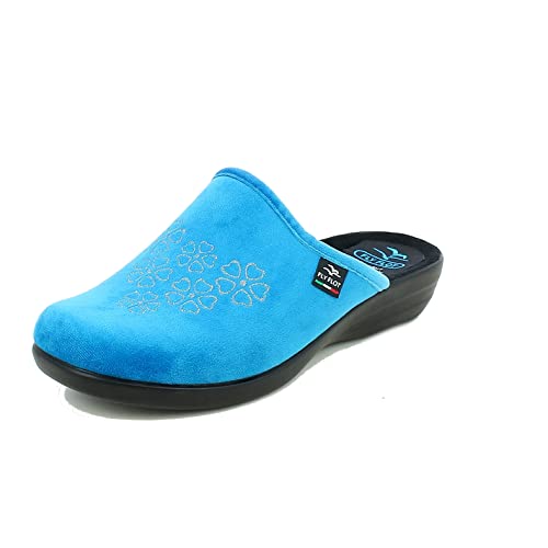 Fly Flot P3T79 PD Azzurro Ciabatte Pantofole Donna Made in Italy, Sottopiede ANATOMICO, Zeppa 2,5 CM, ANTISHOCK, AUTOMODELLANTE, 100% ENERGIA RINNOVABILE