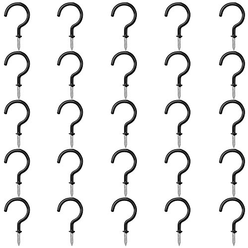 25 pacchetti Ganci a soffitto del gancio della tazza, 2.9 pollici,FineGood Vinile rivestito Avvitatore a vite Per uso interno ed esterno - Nero
