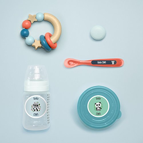 PER SEGNALARE GLI OGGETTI: etichette rotonde per contrassegnare biberon, bottiglie d'acqua, contenitori per la merenda, ecc. e mini etichette per piccoli oggetti, penne, pastelli, piccole posate per bambini, ecc.