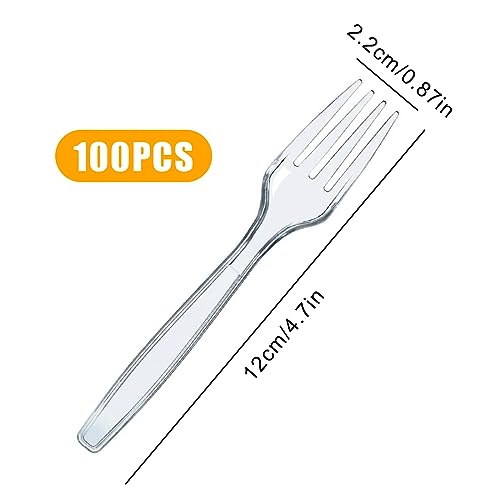 Pacchetto da 100 forchette trasparenti riutilizzabili per feste, torte e catering, ideali per interni ed esterni come matrimoni e compleanni (11,5 cm)