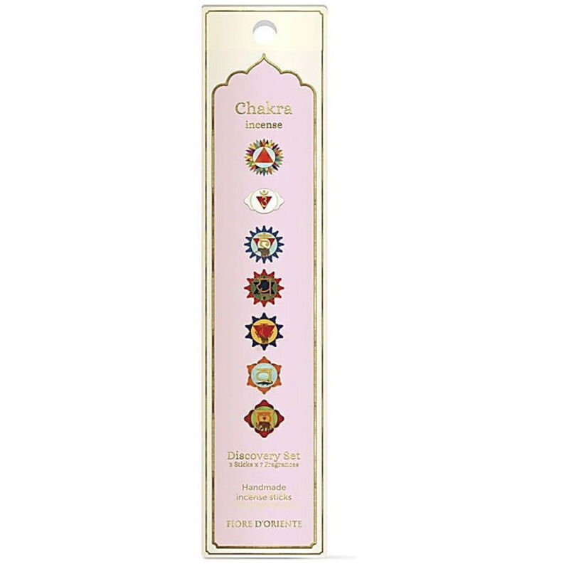 Scoprite l'armonia con questa confezione campione di 7 incensi chakra. Realizzato a mano con soli ingredienti naturali. - 100% incenso naturale fatto a mano - Armonizza i chakra - Confezionato in una scatola di carta colorata con informazioni in inglese Questa confezione di incenso è stata sviluppata con un incenso naturale per equilibrare i 7 chakra, il sistema energetico sottile del corpo. L'incenso è realizzato secondo le ricette tradizionali indiane. Specifiche: Nessun additivo artificiale o chimico Contenuto della confezione: 3 bastoncini di incenso per ogni varietà