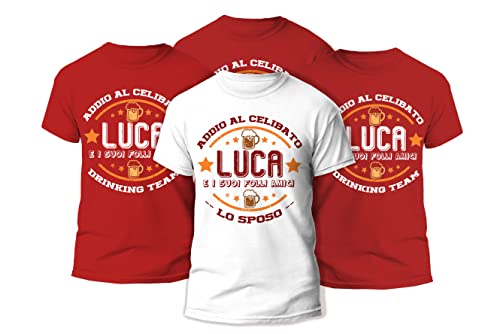 Pacchetto Magliette Addio al Celibato Personalizzate - [ Nome Sposo ] - Drinking Team - Bevitori - T-Shirt Divertenti - Tshirt Festa Celibato - Idea Regalo