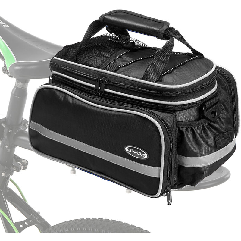 Le caratteristiche di questa borsa da bici hanno un ampio spazio per i tuoi oggetti. Comprende uno scomparto principale, una tasca a rete e un cordoncino elastico, una tasca posteriore e due tasche laterali. La tasca a due lati puo essere decompressa per espandere lo spazio per una maggiore capacita. Con una tracolla rimovibile, questa borsa da bici puo essere utilizzata anche come tracolla o borsetta, ideale per escursioni in bicicletta e nei fine settimana. Caratteristiche: Tessuto in poliestere di alta qualita, resistente all'acqua e ai graffi. Capacita espandibile 10L-25L: decomprimere le due tasche laterali per uno spazio di archiviazione piu ampio. Tasca a rete e cordino elastico per impermeabile o asciugamani. Tasca posteriore per borraccia, guanti, parapioggia, ecc. Striscia riflettente per aumentare la visibilita e la sicurezza di notte. Viene fornito con una tracolla rimovibile, la borsa puo essere utilizzata come bauletto per bici, tracolla o borsetta. Include una copertura