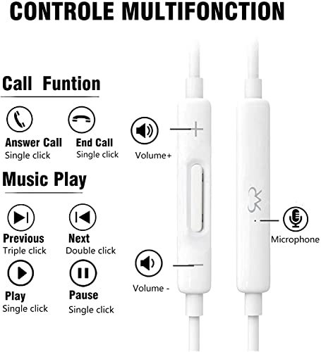 3 pacchi - Auricolari,auricolare in ear,cuffie cablate con microfono e controllo del volume, bassi potenti,per Samsung, Xiaomi, Huawei, ecc.(bianco)