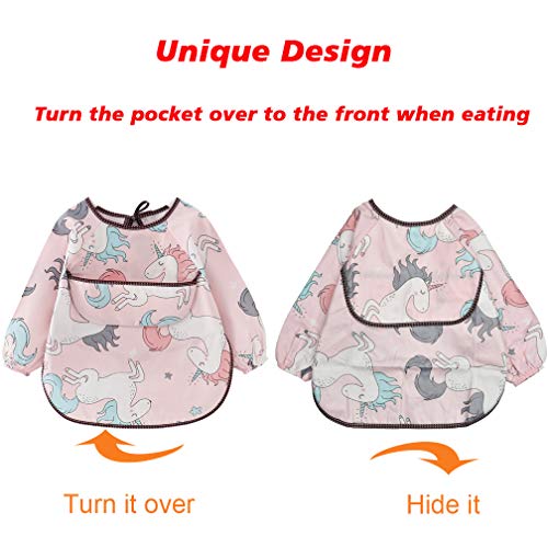 2 Pacchi Bambini Bavaglino a Manica Lunga Impermeabile Bavaglino con il Cibo Catcher Tasca Lavabile Grembiule di Cotone per 6-36 mesi Bambini che mangiano Pittura e giocando Rosa