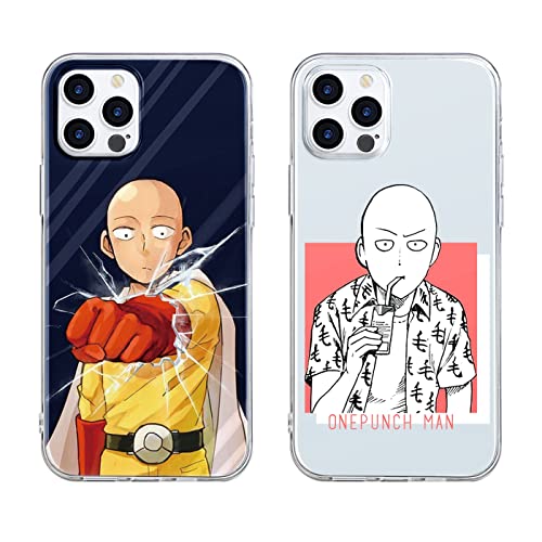 2 Pacchi - Cover per iPhone 13 mini 5.4",ONE PUNCH MAN Manga Anime TPU Silicone Antiurto Morbida Protezione Cover Compatibile con iPhone 13mini,01