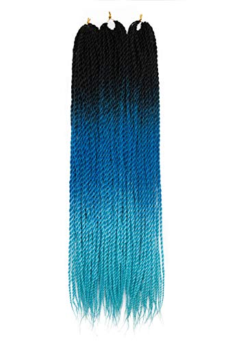 3 pacchi Extensions per i capelli Torsione delle trecce all'uncinetto Sintetico Braiding Hair Small 2X Twist Trecce per capelli 30 supporti/fascio 60cm - Nero a Blu scuro a Blu puro