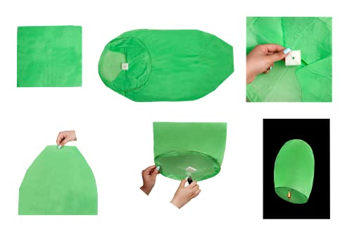 6 Pacchi di Lanterne Celesti Multicolore Fatte a Mano in Carta Cinese per Feste di Compleanno, Matrimoni, Natale, Capodanno e Altri Festival, Biodegradabili e Resistenti al Fuoco. (Verde)