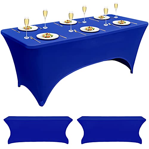 2 pacchi di tovaglia in spandex da 1,8 m in poliestere tovaglia rettangolare tovaglia estensibile tovaglia aderente tovaglia per banchetti di nozze cocktail patio mostre artigianali copritavolo (blu)
