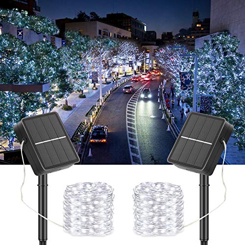 2 Pacchi - VIMOV Luci Solari Esterno, 15M 150 LED Catena Luminosa Solare Impermeabile IP65 con 8 Modalità, Luci a Stringa Solari con Accensione/Spegnimento Automatico per Decorazione (Bianco Freddo)