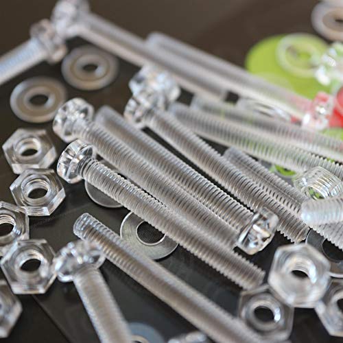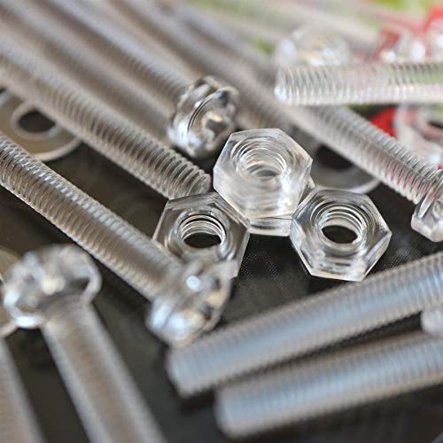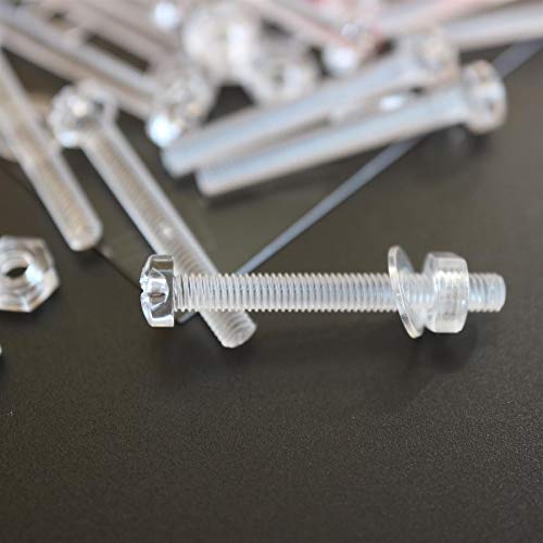 Pacco di 60 Acrilico Bulloni e Dadi, Rondelle, M3 x 25mm in Plastica Trasparente - Acrilico Viti