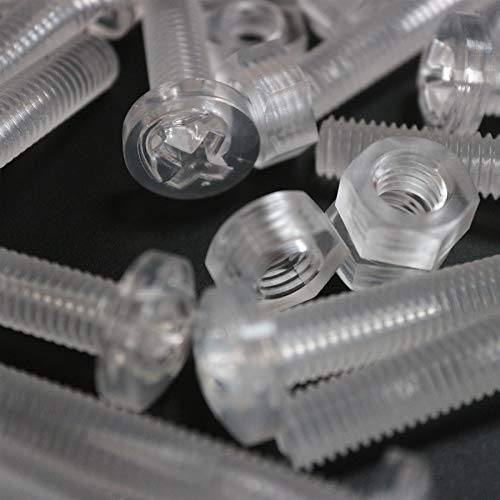 Pacco di 60 Acrilico Bulloni e Dadi, Rondelle, M6 x 40mm in Plastica Trasparente - Acrilico Viti