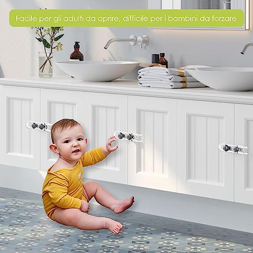 【Installazione facile】- Dì addio alle installazioni complicate! I nostri chiusura cassetti per bambini possono essere facilmente installati in pochi secondi senza la necessità di attrezzi o forature. Il design senza adesivo consente una rimozione comoda senza lasciare segni sui mobili. Basta premere contemporaneamente due pulsanti per sbloccare, fornendo un facile accesso agli adulti mantenendo i bambini al sicuro.