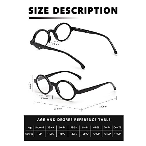 5 paia di occhiali da lettura rotondi da uomo e da donna- Set di 4 occhiali da lettura in plastica con cerniera a molla in nero, tartaruga e trasparenti per uomo e donna