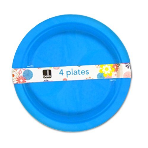 Pacco 4 Piatti Plastica Riutilizzabili 'Bello' - per Feste, Picnic, Barbecue - Blu