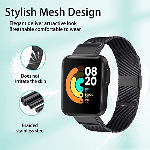 PaceBid Cinturino Compatibile con Xiaomi Mi Watch Lite/Redmi Watch/Redmi Watch Lite, Acciaio Inossidabile in Metallo Cinturino, Uomo Donna, Regolabile Cinturino Bracciale per Mi Watch Lite -Nero
