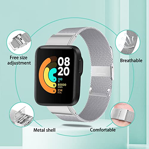 PaceBid Cinturino Compatibile con Xiaomi Mi Watch Lite/Redmi Watch/Redmi Watch Lite, Acciaio Inossidabile in Metallo Cinturino, Uomo Donna, Regolabile Cinturino Bracciale per Mi Watch Lite -D'argento