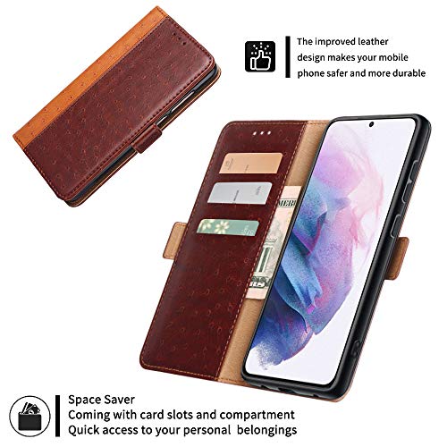 PaceBid Custodia Compatibile con Samsung Galaxy S30 + 5G/S21+ 5G, Premium PU Pelle Flip Custodia con Funzione Stand, [Fessure per Schede & Scomparto Laterale] [Chiusura Magnetica] - Brown