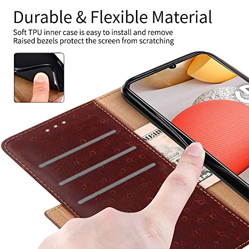 PaceBid Custodia Compatibile con Samsung Galaxy A42 5G, Premium PU Pelle Flip Custodia con Funzione Stand, [Fessure per Schede & Scomparto Laterale] [Chiusura Magnetica] Portafoglio Cover- Brown