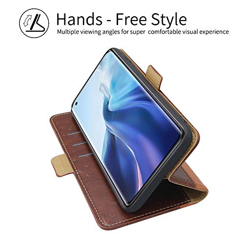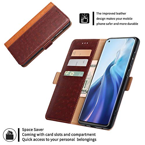 PaceBid Custodia Compatibile con Xiaomi Mi 11, Premium PU Pelle Flip Custodia con Funzione Stand, [Fessure per Schede & Scomparto Laterale] [Chiusura Magnetica] Portafoglio Cover- Brown