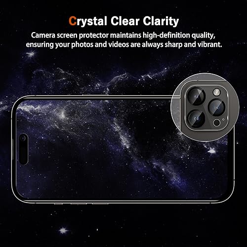 【Aggiorna doppia protezione e antiurto】: Pellicola protettiva per lo schermo e la protezione dell'obiettivo della fotocamera. Sono realizzati in vetro super antideflagrante 9H, che protegge la tua fotocamera da graffi e cadute nella massima misura. Allo stesso tempo, il rivestimento antiriflesso notturno è incorporato nell'obiettivo della fotocamera per mantenere la luminosità originale dello schermo o dell'immagine e non influirà sulla tua foto/Selfie.
