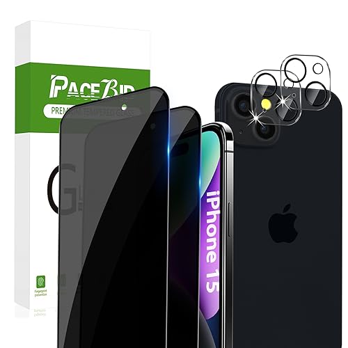 PaceBid Privacy Pellicola Protettiva per iPhone 15 6,1" Vetro Temperato [2+2 Pezzi] Anti Spy Vetro Temperato + Pellicola Fotocamera, 9H Durezza, Anti-Graffio Proteggi Schermo per iPhone 15